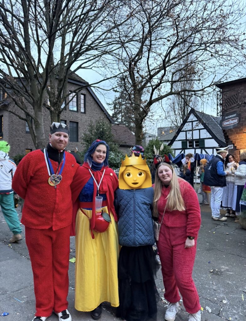 Regimentskönigspaar und Jungschützenkönigin Ashley beim närrischen Treiben in Düsseldorf-Niederkassel am Karnevalssonntag