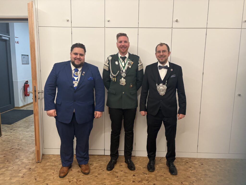 Drei der vier linskrheinischen Regimentskönige: Klaus Götze (Niederkassel) Dennis Kamp (Heerdt) und Michael Janz (Lörick)Nicht mehr lange – die letzten Termine und das Jahr ist schon wieder rum.
