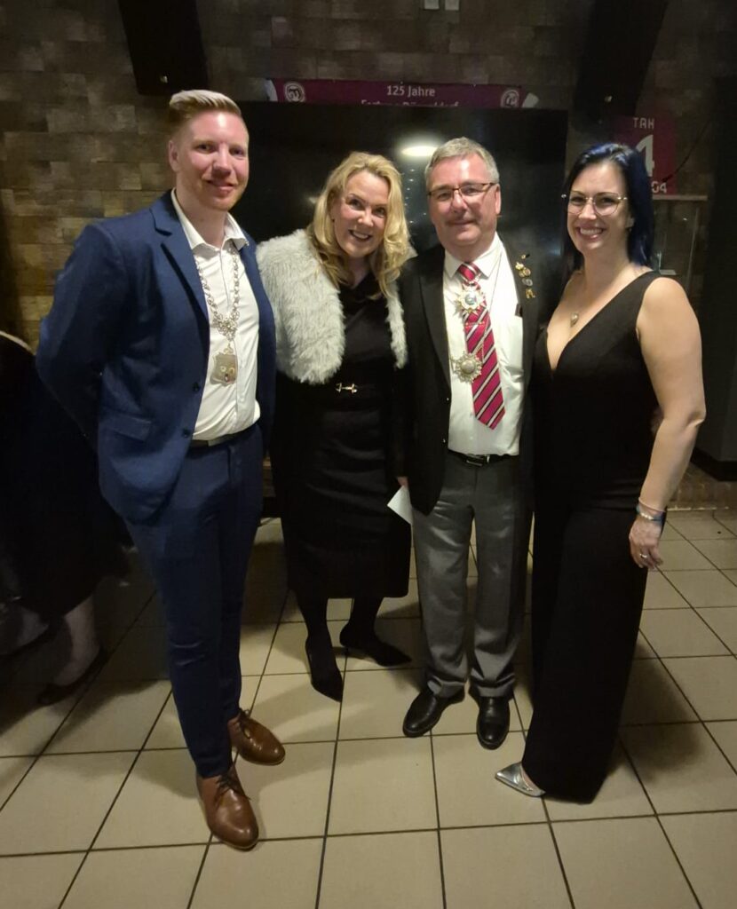 Unser Jungschützenkönigspaar Leon und Ashley in den RheinterrassenVorstand, Königspaare und Begleiter der Königskompanie beim Start der Schützensaison 2026Fototermin im Rheingoldsaal in den Rheinterrassen